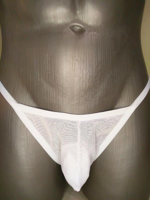 Мужские стринги из белой эластичной сеточки, на регуляторах.