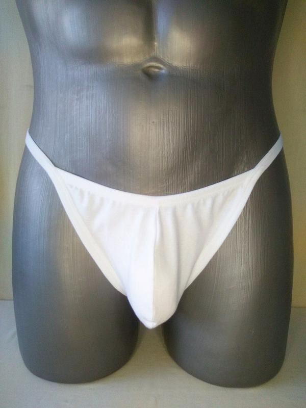 Мужские стринги из высококачественного турецкого кулира белого цвета отличный вариант под светлую одежду. Трикотаж достаточно плотный и эластичный, сзади есть регуляторы для удобной посадки. Размеры XS, M, L, 2 XL, 3 XL.