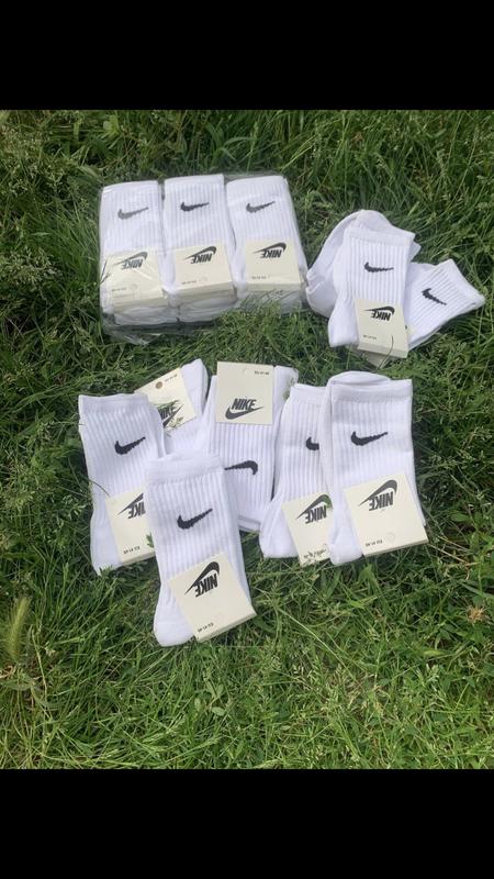 Высокие белые носки Nike Размер: 41-45 Состав: 80% Хлопок, 17% Полиамид, 3% Эластан цена: 35 грн за пару Минимальный заказ от 6 пар ціна - за 6 пар 200 грн цена - за 12 пар (упаковка ) 390грн