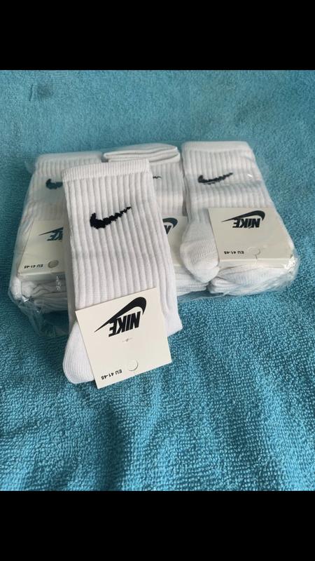 Высокие белые носки Nike Размер: 41-45 Состав: 80% Хлопок, 17% Полиамид, 3% Эластан цена: 35грн за пару Минимальный заказ от 6 пар цена - за 6 пар 200грн цена - за 12 пар (упаковка ) 390 грн