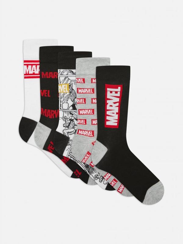 Высокие хлопковые носки с принтом Marvel Primark ⭐В наличии: Размер 43/45 (длина ступни в не растянутом виде 24см) - 1 неполноватый набор из 4 пар (белые с надписью - продано) Состав: коттон, полиэстер, эластан Новые, из стока, однако бумажная бирка потеряна Стоимость указана за 1 набор на 5 пар