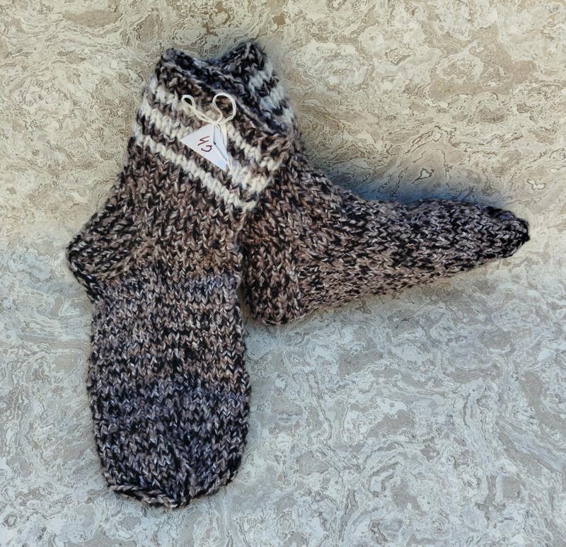Теплые,мягкие,не колючие,не тонкие пряжа смесовая(акрил,полиамид,шерсть,и т д) Выполнены с двойной пяткой,что позволяет носить не один сезон размер 43 носочки можно стирать в стиралке на 30 градусов с отжимом не больше 800 оборотов обмена и возврата нет