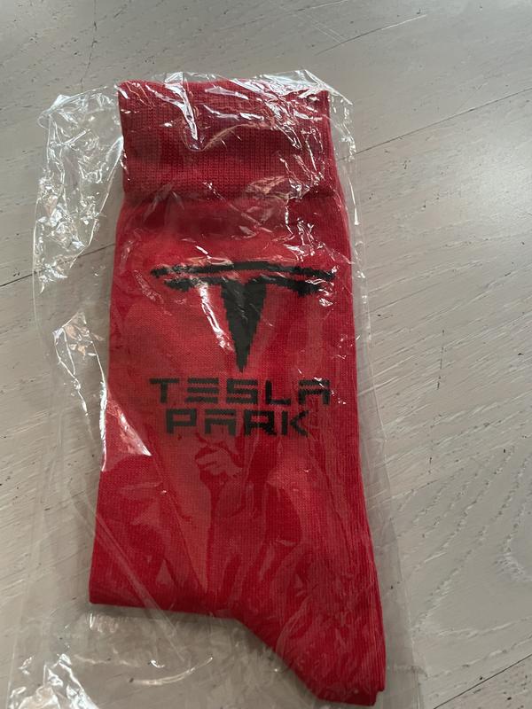 Нова пара шкарпеток в упаковці Яскраво червоні з логотипом Тесла