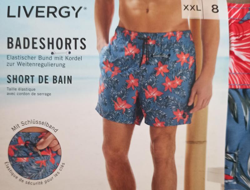 Немецкое качество! Шорты для пляжа и плавания от немецкого торгильного дома LiDL Пояс с эластичной резинкой и шнурком для регулировки объема С внутренними плавками из мелкой сетки Два боковых кармана и один задний карман на липучке с резинкой-петелькой, на которой можно носить ключ и не боятся его потерять Легкая и мягкая ткань, быстро сохнет Подходят для купания Состав материала: 100% полиэстер Размер XXL euro 56-58 Замеры: полуобхват в поясе 55 см (тянется до 60 см) полуобхват в бедрах 60-62 см длина/ шаговый шов 45/12 см посадка спереди/сзади 36/47 см