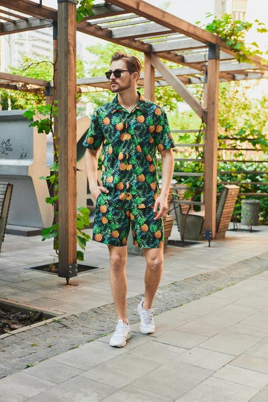 Легкая ткань:вискоза.Турция Свободный крой.Просто топовый летний вариант Ткань сделана с нанесением принта Рубашка застегивается на пуговицы Шорты на резинке со шнурком, так же два кармана по бокам Размеры: S M L XL арт 30