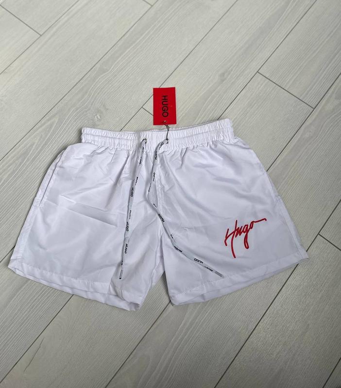 Чоловічі пляжні шорти Hugo Матеріал: 100% поліестер; сітчаста підкладка Колір: чорний; білий; Розміри в наявності: S M L XL XXL Живі фото 📸 ————————————————————