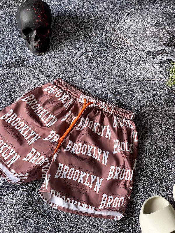 Ці стильні пляжні шорти ідеально підходять для літніх відпусток. Виготовлені з легкого плащівкового матеріалу, вони швидко сохнуть і дуже зручні у носінні. Оснащені підкладкою, шорти забезпечують додатковий комфорт. Яскрава комбінація кольору з принтом 'BROOKLYN' додає оригінальності, а еластичний пояс з шнурком дозволяє ідеально підігнати їх по фігурі. Підходять для пляжу та активного відпочинку.