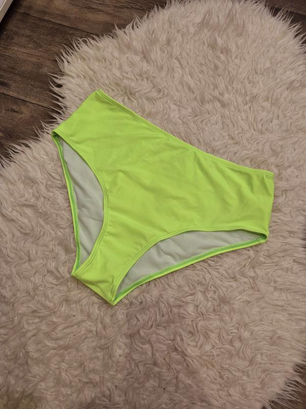 Плавки р.XL, є маленька зацепка біля різінки (останнє фото), в носке не видно, висота 33см, бедра 45-55см, пояс 38-50см, в житі насичений салатовий колір.
