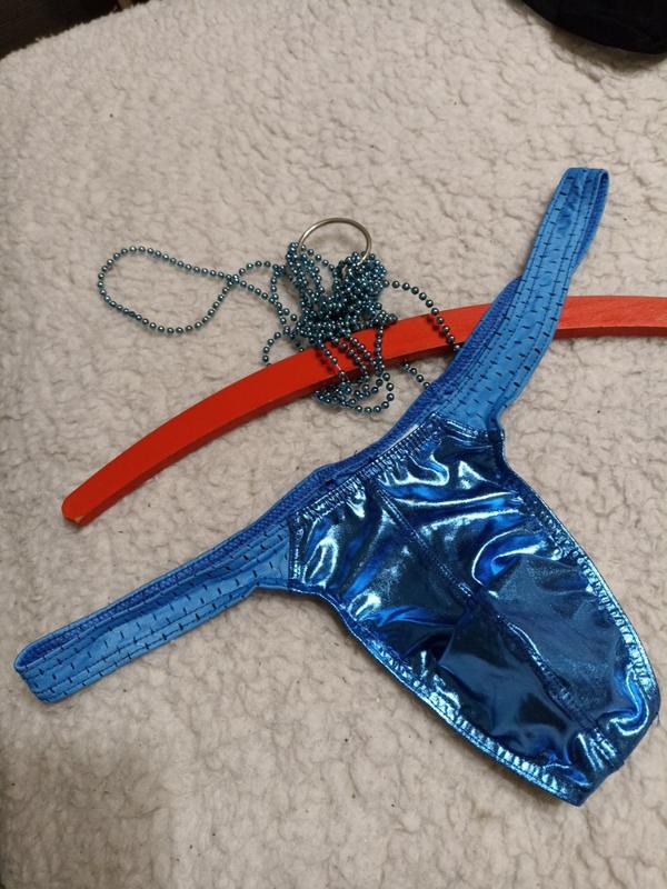Новые мужские эластичные стринги размер Л, впереди латексные, сзади дышащая ткань, замеры на фото