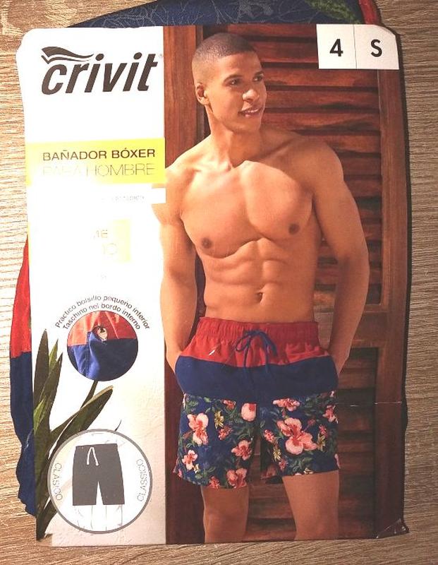 Шорти для купання німецької фірми Crivit від торгового дому Lidl. Склад : 100 % поліестер. Тканина швидко сохне, всередині підкладка - сітка. Є 2 кишені з боків, 1 кишеня ззаду з гумкою і маленька кишеня всередині на поясі для ключика. Шнурок на поясі робочий. Розмір EUR-4/S: довжина бічного шва 40 см, кроковий шов 12 см, ширина пояса 38 см, ширина по стегнах 52 см, посадка переду 33 см, посадка ззаду 40 см, ширина штанини зверху 33 см і внизу 29 див. Размер EUR-5/М: длина бокового шва 42 см, шаговый шов 13 см, ширина пояса 40 см, ширина по бедрам 55 см, посадка переда 34 см, посадка сзади 42 см, ширина штанины вверху 35 см и внизу 31 см. Размер EUR-6/L: длина бокового шва 43 см, шаговый шов 14 см, ширина пояса 47 см, ширина по бедрам 57 см, посадка переда 35 см, посадка сзади 44 см, ширина штанины вверху 37 см и внизу 32 см. Размер EUR-7/XL: длина бокового шва 46 см, шаговый шов 15 см, ширина пояса 50 см, ширина по бедрам 62 см, посадка переда 37 см, посадка сзади 46 см, ширина штанины вверху 40 см и внизу 34 см. №6/5