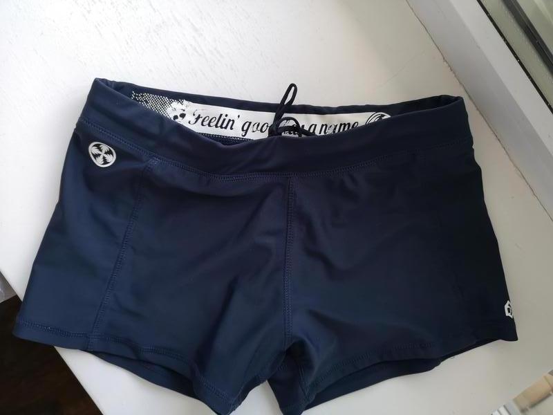 Плавки в идеальном состоянии, без нюансов. Размер S, замеры:ПИТ 33см,ПОБ 44см, посадка 23см, ширина сбоку 22см,нога 23см. Спереди на подкладке, в поясе есть шнурок,плоские швы. Цвет темно-синий.