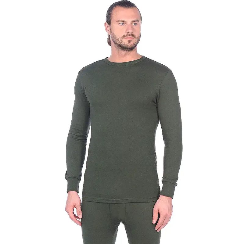 Комплект термобелья состоит из лонгслива и кальсон. Термобелье пошитое из качественного, натурального турецкого хлопка в Украине.(Бавна 95%, эластан 5%) Хлопок обладает хорошими термозащитными свойствами, из-за особого строения волокна, а так же хорошей воздухопроницаемостью, что делает вещи из данного типа ткани теплыми и удобными. Благодаря правильному крою изделия термобелье не стесняет движения, что позволяет чувствовать себя комфортно и уверенно. Принцип работы термобелья заключается в аккумулировании собственного тепла тела. На обратной стороне есть небольшой начес, благодаря которому тело дышит и не собирается влага. Модель рассчитана на взрослых и предлагается в разных размерах от S до XXXL Преимущества: -Натуральный состав ткани -Идеальная посадка по фигуре -Широкі манжети -Повышенная эластичность -длиненная спинка футболки -Не заметно под одеждой Характеристики: -Склад: 95% бавовна, 5% еластан -Размер: с S до XXXL (44-60) -Температурный режим для ношения: +5 до - 25 градусов -Цвет: хаки -Произведено в Украине