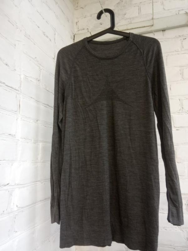фирменная ультратонкая шерстяная термобелье в идеальном состоянии размер указан L перфорированный верх спины и подмышки пог 43см длина рукава от горловины 77см длина изделия по спине 74см очень хорошо тянется
