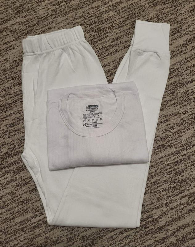 Новый комплект, на высоком мужчине. Футболка с короткими рукавами. Белого цвета. Материал приятный к телу. Хорошо держит тепло. Сделано в Пакистане. Размер "М" рост "5" или даже "6", ориентируйтесь по измерениям. Подштанники - "Reggatta" Длина - 115 см. Довжина внутр. шва - 82 см. Пояс - 34 см тянется до 50 Бедра - 51 см Посадка - 33 см. Состав: Бавовна - 50% Полиэстер - 50% Футболка - "Click" Длина - 80 см. Плечи - 42 см. Груди - 49 см. Рукава - 22 см. Состав: Полиэстер - 80% Вискоза - 20%