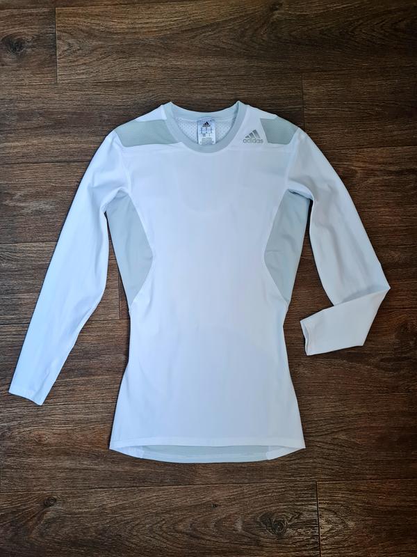 Футболка Adidas TechFit за счет своих компрессионных свойств позволит вам не только быстро справиться с усталостью, но и станет поддержкой для мышц. Представленная модель футболки может применяться и как тренировочный комплект одежды, и как повседневный для поддержания своего стиля. Терморегуляционные свойства представленного типа одежды обеспечиваются за счет комбинации материала, что использовался при её изготовлении. Футболка Адидас ТечьФит за счет комбинации эластана в волокнах ткани обеспечивает рубашке эластичные свойства, позволяя ей растягиваться, тем самым, избегая появления повреждений. Крой и свойства ткани обеспечивают идеальную посадку футболки на вашем теле, одновременно с этим, позволяя двигаться вам максимально свободно. Длина по уду-73 см. ПОГ в не растянутом состоянии-46см. Длина рукава от плечевого шва-55см. Плечи от шва до шва-43см.