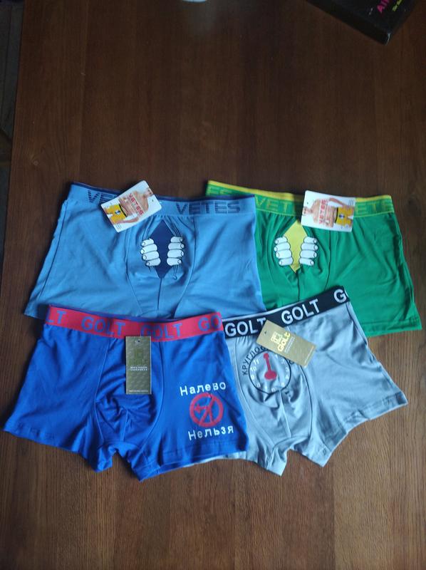 Трусы с приколами.Гарный подарок к Николаю. Ткань 95 процентов хлопок, стильные, модные прикольные. Размер L( 44-46) длина 22 см, ширина в резинке 30см Размер XL (48-50) длина 25см, ширина в резинке 33см Цена 90 грн