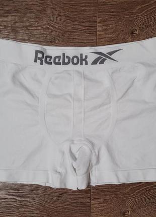 Боксеры американского спортивного бренда Reebok, цвет белый, размер М, состав 92% полиамид,8% эластан, производство Китай, замеры (п/объем пояс резинка 37-44, длина по внешнему шву 29, ширина внизу 23.5).Новые, без бирки, сток.