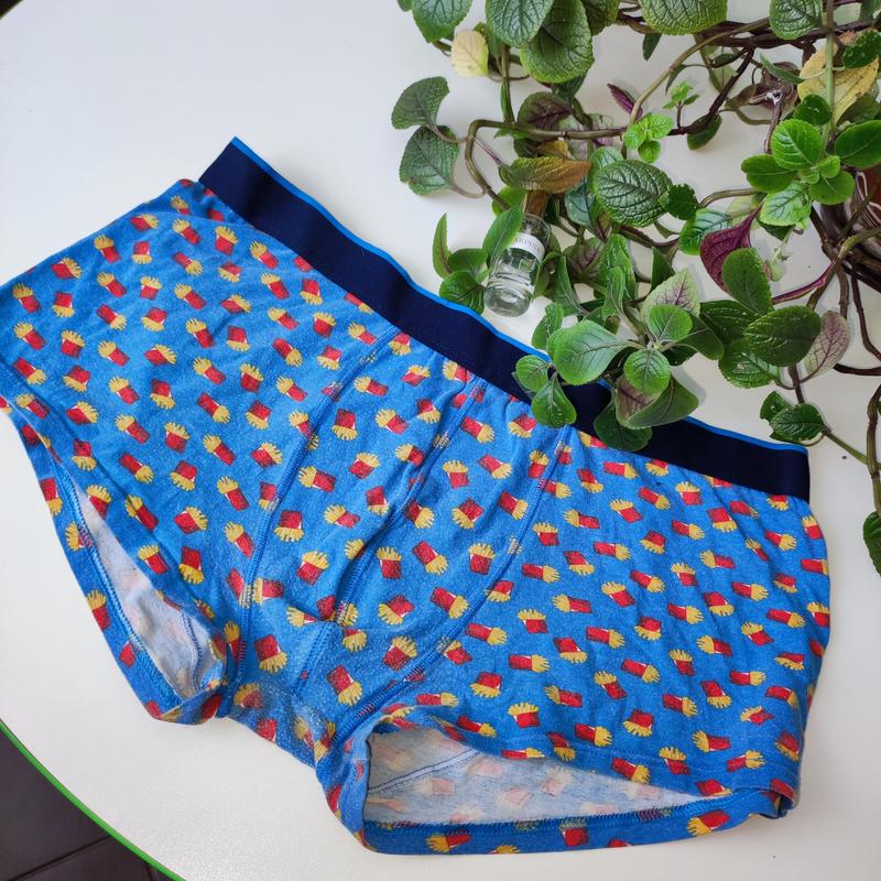 Предлагаю вашему вниманию мужские трусы боксеры Размер XL-XXL Состояние хорошее, есть катышки Ткань бирки срезанные Цвет синий с принтом картофеля фри Замеры: Полуобхват по резинке 41 см высота: 27 см