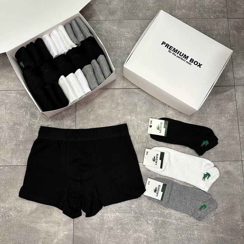 Комплект 5 штук білизни + 18 пар шкарпеток з коробкою на вибір🔥 Нижня білизна Матеріал: 95% бавовна, 5% еластан (premium quality) Розміри: S, М, L, XL (повномірні, вказуйте зріст/вагу) Шкарпетки Матеріал: 80% бавовна, 17% поліамид, 3% еластан Розміри: 41-45 Якість оригіналу за доступною ціною! Фабричний пошив, приємні до тіла, модель має подвійний шар тканини в місці прилягання до анатомічних органів чоловіка. Коробка входить у вартість комплекта!