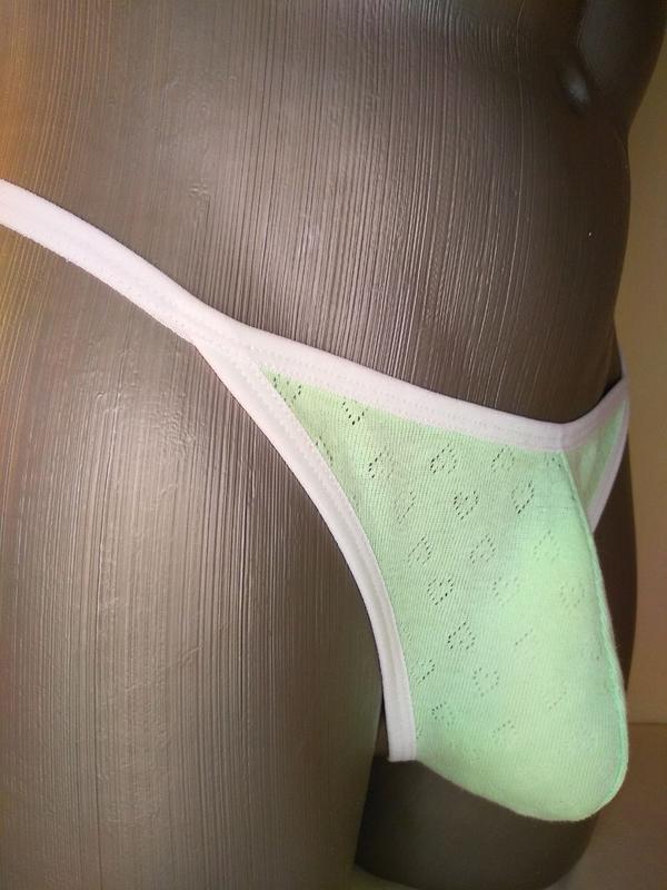 Мужские стринги из 100% хлопка мяты. Ткань очень мягкая и приятная к телу. Хлопок хорошо впитывает влагу и легко пропускает воздух, ткань обладает хорошей эластичностью. Сзади есть регуляторы.