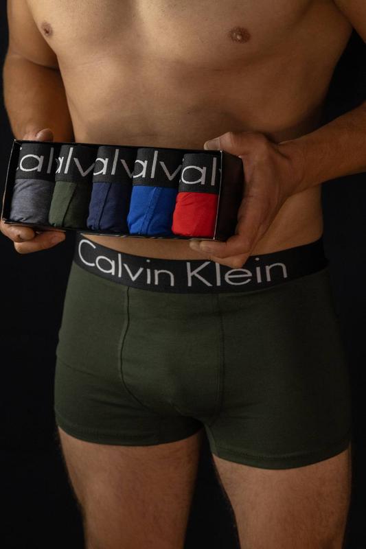 Модель Calvin Klein цветная черная резинка ▫️6 цветов: красный, темно синий,серый,электрик,хаки черный ▫️Состав: 95% коттон 5% еластан ▫️Размеры: M; L; XL; XXL;XXXL ◾️Цена: 700 грн (в коробке 5 шт) 570 грн (в коробке 3 шт)