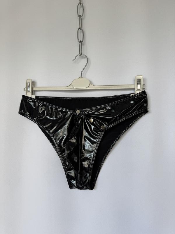Трусы латекс под лаковую кожу мокрый эффект черные с кнопками