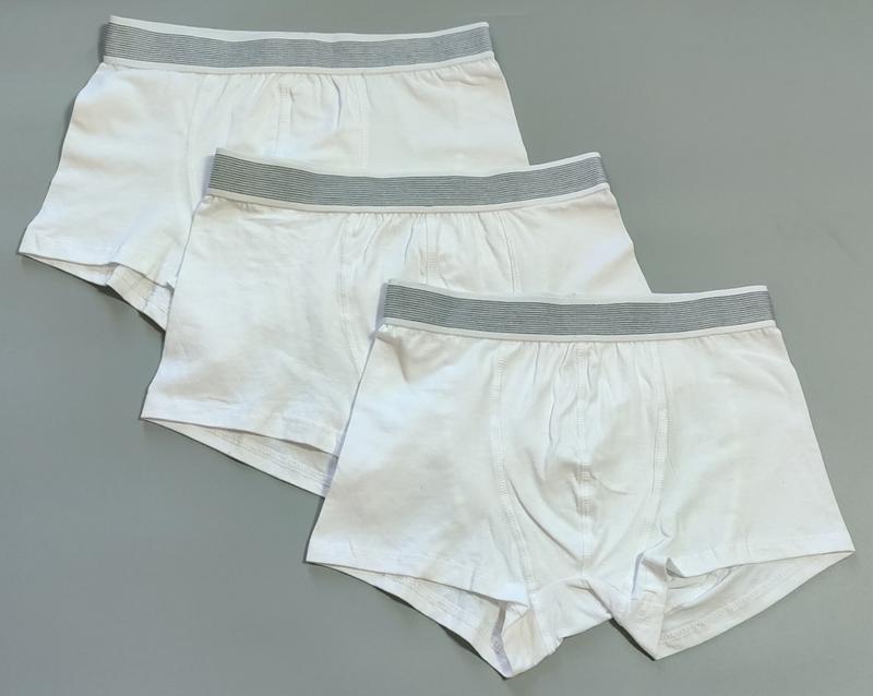 новые\без упаковки остатки товара из фирменного магазина комбинированный набор из 3 боксеров в белом цвете. XS 95% бавовна 5% еластин Из приятного мягкого материала Тянутся хорошо полуобъем резинки 29, 30 см полуобъем 35 см длина 20 см