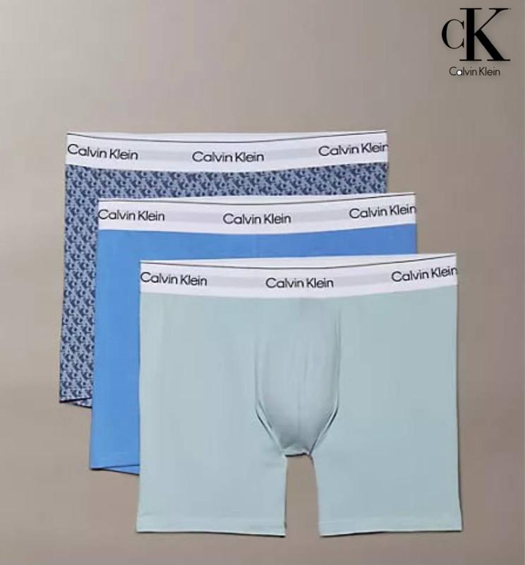 Чоловічі труси боксери Calvin Klein. Набір з 3х штук в синій кольоровій гаммі з білими резинками з лого. Замовлені з офіційного сайту в США. В наявності розміри S, M, L, XL (повномірні!). Розмірна сітка та інша інформація вказана на фото коробки в оголошенні. Модель Boxer Brief. Склад тканини - котон зі стрейчем (95% котон, 5% еластан). Гарно тягнуться. Презентабельне пакування - чудово підійде на подарунок! Ціна вказана за набір. Торгу немає. Відправка Новою чи Укр Поштою, Міст, є аложений платіж із передплато