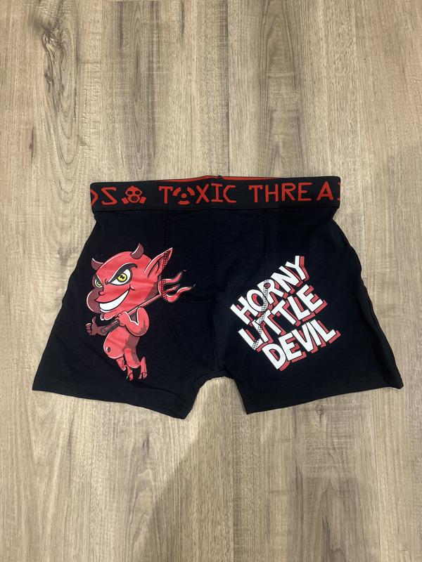 Стильні чоловічі труси-боксери чорного кольору з яскравим дизайном. Особливості: • Бренд: TOXIC THREAT • Контрастний червоний пояс з логотипом • Оригінальний принт: червоний чортик та напис "HORNY LITTLE DEVIL" • Класичний крій боксерів • Комфортна посадка Розміри: • Розмір: M • Довжина: 29 см • Обхват поясу: 34 см • Обхват стегон: 46 см Матеріал забезпечує комфорт протягом дня. Ідеально підходять для повсякденного носіння або як оригінальний подарунок.