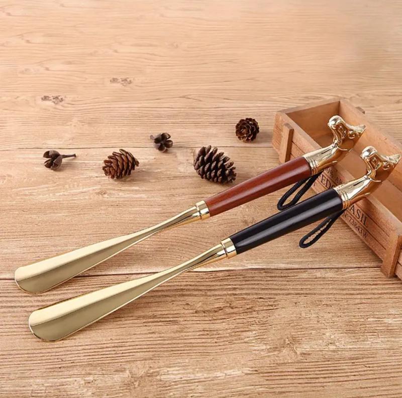 Металлический рожок для обуви с деревянной ручкой. Цвет черный Длина 32 см