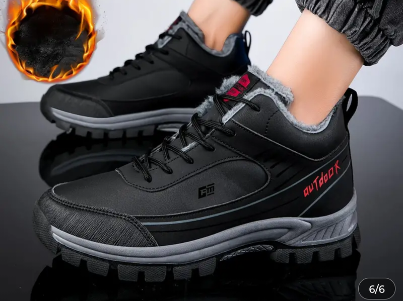 Зимние флисовые ботинки для пар, мужские теплые хлопковые ботинки, ботинки для пешего туризма на открытом воздухе, сплошной черный цвет, на шнуровке, универсальный крой, ровный носок, верх из полиуретана, тканевая подкладка, подошва из термопластичной резины, тканевая стелька