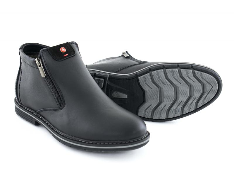 Тёплые мужские кожаные зимние ботинки. Зимняя обувь утеплена шерстью, на змейках в класическом стиле и черном цвете. ПО СТЕЛЬКЕ 26 СМ