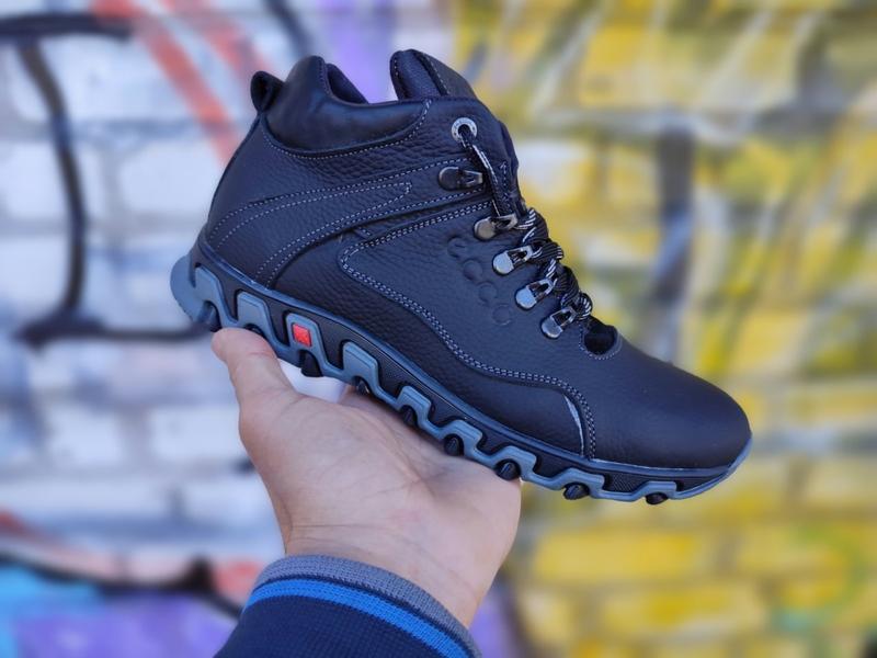 Теплые ботинки спортивные,кроссовки кожаные черные зимние мужские (зима 2022-2023) для муж...