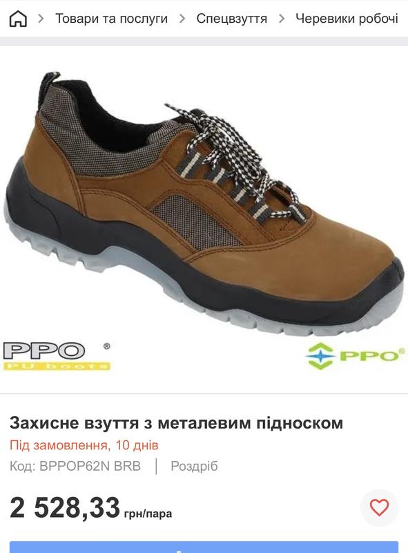 Терміново продаю! Захисне взуття з металевим підноском - верх взуття виконаний зі шкіри нубук і велюру з високим коефіцієнтом паропроникності. - двошарова підошва (PU / TPU) - не дряпає поверхню - легкий, міцний і міцний, ефективно пом'якшує нерівні поверхні - висока стійкість до стирання, порізів і розтріскування - термостійкість до 120 ° C при короткочасному контакті - поглинання енергії в області п'яти - скульптування носка підошви додатково захищає від ковзання при роботі на схилах - комір і язичок м'яко оброблені поролоном - відмінна вентиляція і гігієнічні властивості взуття - металевий підносок, що захищає від ударів з енергією до 200Дж або тиску з силою 15кН - оснащений знімною гигроскопичною підкладкою з дуже хорошими антіперспірантними властивостями - антистатичний - категорія S1 SRC - відповідають вимогам EN20345, EN20344 Характеристики Основні Виробник REIS Країна виробник Польща Сезон Весна/осінь Вид взуття Черевики Матеріал верху Нубук Стиль Класичний Колір Помаранчевий Форма миска/носка Закруглений Візерунки і принти Без візерунків і принтів Стан Новий