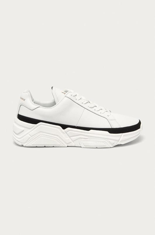 Черевики із колекції Armani Exchange. Модель виготовлена із поєднання натуральної та штучної шкіри. Резинова підошва. Текстильна внутрішня частина. Розмір UK 11 (45)