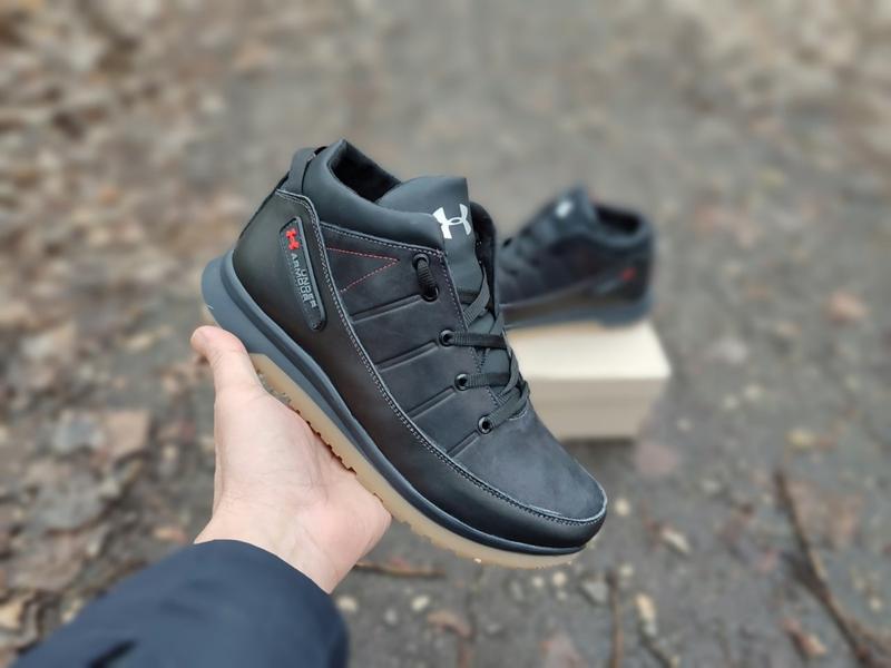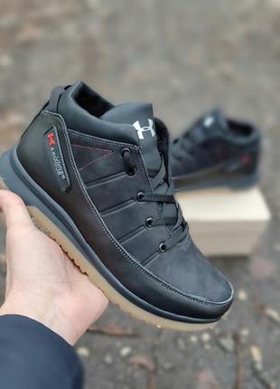 Теплые кеды андер амур under armour кожаные черные зимние мужские для мужчин, удобные, ком...