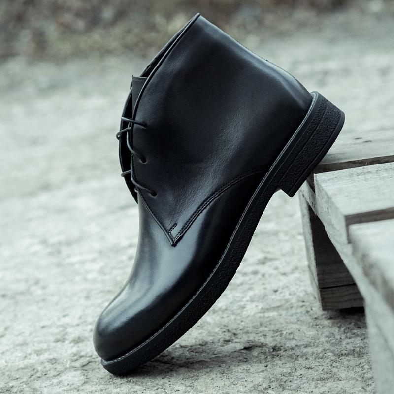 Современная модная модель выполнена в черном цвете из натуральной кожи. Очень привлекательные дезерты без каблука - это максимальное удобство. Изготовлены украинским производителем Икос, гарантирующим высокое качество и надежность. В таких ботинках Вам будет тепло, удобно и безопасно. 43 - на стопу 28 см 45 - на стопу 29,5 см