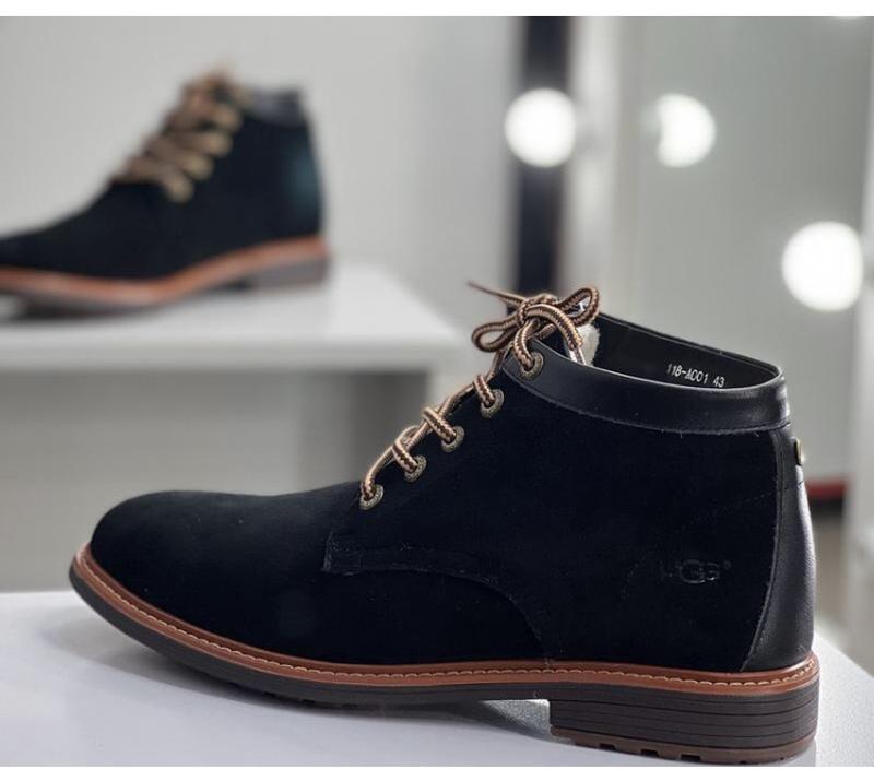Зимние мужские полусапоги Ugg! Выполнены уз натуральные замши и кожи! Утепленные шиучным мехом Рантовый метод крепления подошвы! Подошва нескользкая Один размер 43 Полностью длина стельки 29 см Застежка шнурика