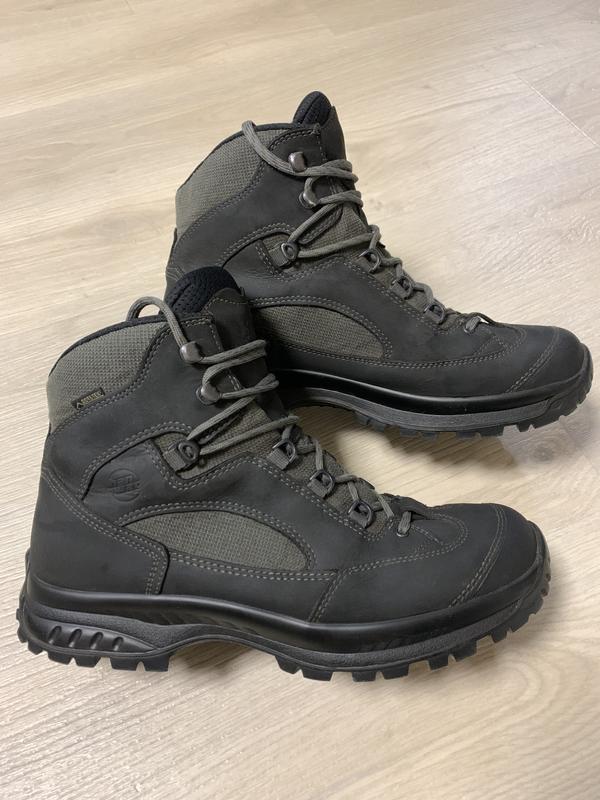 Флагманские ботинки от именитого немецкого бренда Hanwag на GTX в отличном состоянии! Очень качественные, легкие и удобные, в них хоть по городу, хоть в горы, куда бы, или как берцы тоже не подведут, потому что это HANWAG! Материалы: натуральный нубук, Cordura, двухкомпонентная мембрана Gore-Tex, съемная анатомическая стелька из пенки и слоя потоотводящей ткани, подошва Vibram Endurance, носок дополнительно защищен термополиуретановой накладкой. Одевались мало, по выборке 43 размер, стелька 28 см. Цена новых 250$.