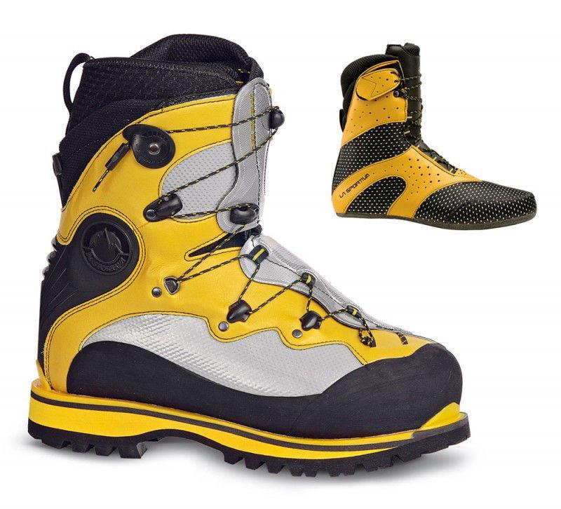 Чрезвычайно техничный ботинок, рекомендованный для альпинизма на больших высотах и для длительного пребывания в холодных условиях. Плюсы: + Инновационная запатентованная шнуровка для внешнего и внутреннего ботинка + Комфортный и точный + Легкий Характеристики: - Внешний ботинок: Синтетическая ткань PU-Tech скомбинированная с двойным слоем плотного полиуретана. Лодыжка и верхняя часть ботинка усилены водоотталкивающим материалом Lorica® - Подкладка:PE + алюминий, в сочетании с защитным перфорированным слоем, предотвращающий износ - Внутренний ботинок: Перфорированный PE - Промежуточная подошва: 5 mm карбоновые волокна, с термальной структурой, в середине полиестровая вставка + утепление из алюминия - Подошва: Vibram® + резиновый рант для защиты ботинка - Патент: Система шнуровки внутреннего и внешнего ботинка - Размеры: 36 - 47 (включая полуразмеры) - Вес: 2 300 г. (пара)