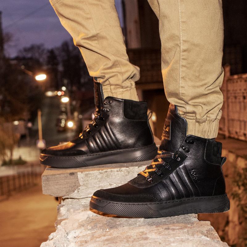 Кожаные мужские ботинки со вставками натуральной замши. Удобные зимние кеды Safari с утеплителем внутри! 41 размер – на стопу 27,2 см