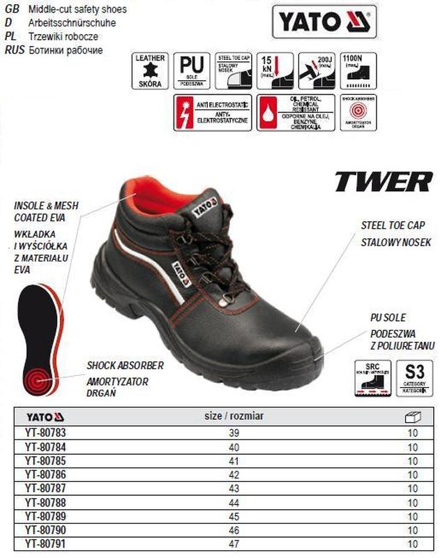 Ботинки рабочие yato польша кожа twer защита s3 размер 45 yt-80789