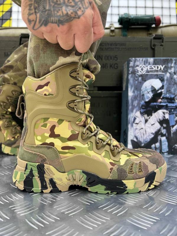 Берци/БОТИНКИ арт.50793 ✔️Цвет: мультикам ✔️Материал нейлон плотностью 600D ✔️Высота 22 см. ✔️Подошва "Cross trekking" ✔️Шнуровка закрытые петли-крючки быстрого шнуровки ✔️Стелька трехслойная съемная стелька ✔️Внутренняя подложка антибактериальная - Cambrelle»®/«SuperRoyal»® ✔️Температурный режим от +15 до -5 ⚠️Берцы тактические – новинка на рынке тактической и трекинговой обуви. Идеально подойдут для военных, полиции, охранных структур, любителей страйкбола, туристов и всех тех, кто ценит качественную и практичную обувь. Берцы оснащены подошвой Cross trekking, позволяющей сохранять стойкость на практически любой поверхности. В такой обуви ваша нога имеет хорошую фиксацию. Внутри берца оснащены специальной антибактериальной подложкой Cambrelle®/SuperRoyal®, которая хорошо отводит влагу и не дает ногам прить. 40-25,5 41-26 42-27 43-27,5 44-28 45-28,5