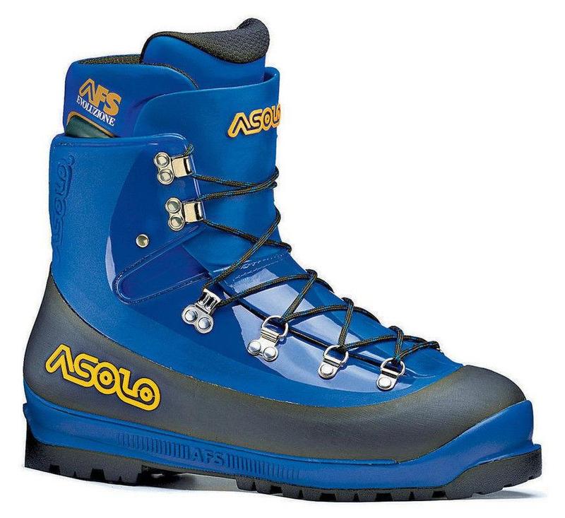Высокогорные ботинки серии Apline Expedition. Alpine - группа моделей ASOLO предназначенная для обеспечения комфорта и безопасности горовосходителей на высотных и технически сложных маршрутах. Характеристики: - верх: выполнен по технологии "Asoframe", пластик PU. - внутренний ботинок: анатомический, 5-ти слойный, водонепроницаемый, комфортный и теплый, анатомическое ложе стопы типа "AFS". - подошва: "Vibram Nilgiry" двойной плотности с противоударным слоем, под кошки-автомат. - система шнуровки: металлические петли и крючки. - вес: 1230 г.