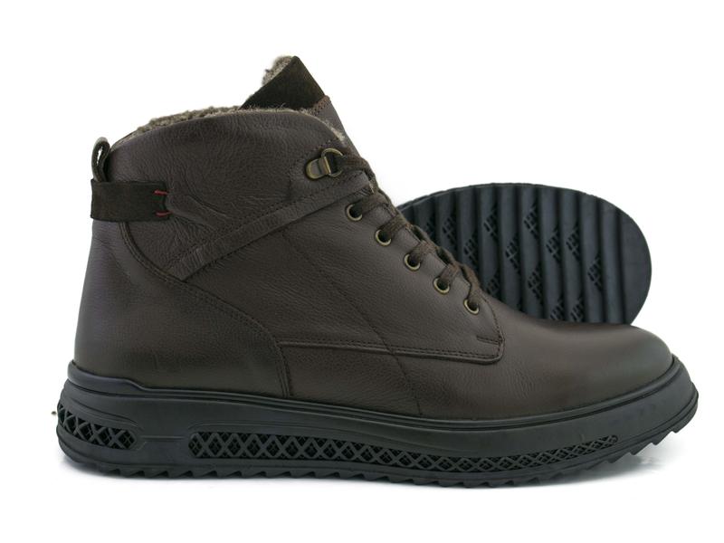Оригинальные мужские зимние немецкие ботинки из натуральной кожи, противоскользящая подошва Обувь в коричневом цвете утеплена мехом Германия, кожа, коричневый, зима, овчина