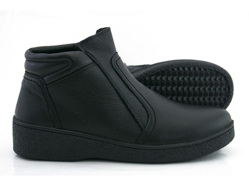 Комфортные мужские зимние ботинки из структурированной натуральной кожи. Обувь утеплена шерстью, со змейкой с внутренней стороны, в черном цвете. Украина, кожа, черный, зима, шерсть
