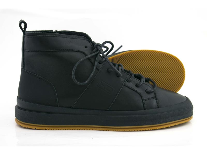 Мужские зимние спортивные ботинки из гладкой натуральной кожи. Обувь утеплена мехом, на змейке и со шнуровкой, в черном цвете. Украина, кожа, черный, зима, мех