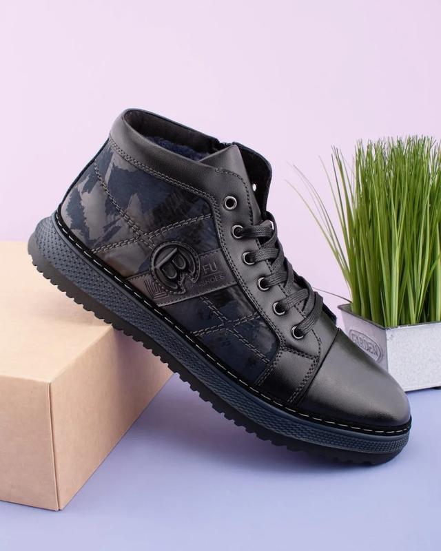 Мужские зимние черные ботинки из натуральной кожи 102890 💥Материал верха: Натуральная кожа 💥Материал стельки: Искусственный мех 💥Цвет: Черный 💥Вид застежки: Шнуровка / Молния 💥Сезон: Зима 💥Размеры: 39, 40, 41, 42, 43, 44, 45 💥Цена : 1880 грн