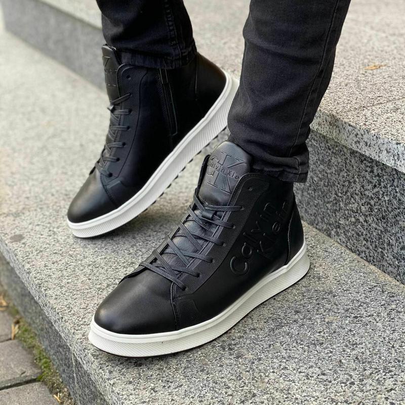 Зимові черевики ck чоловічі, мужские зимние ботинки из натуральной кожи / мех