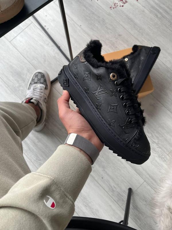 Чобітки Louis Vuitton Time Out Black v2. Матеріал верху шкіра. Матеріал підошви гума. Колір моделі чорний. Ці чобітки підійдуть під сезон зимові. Ці чобітки будуть служити вам довго і радувати Вас.
